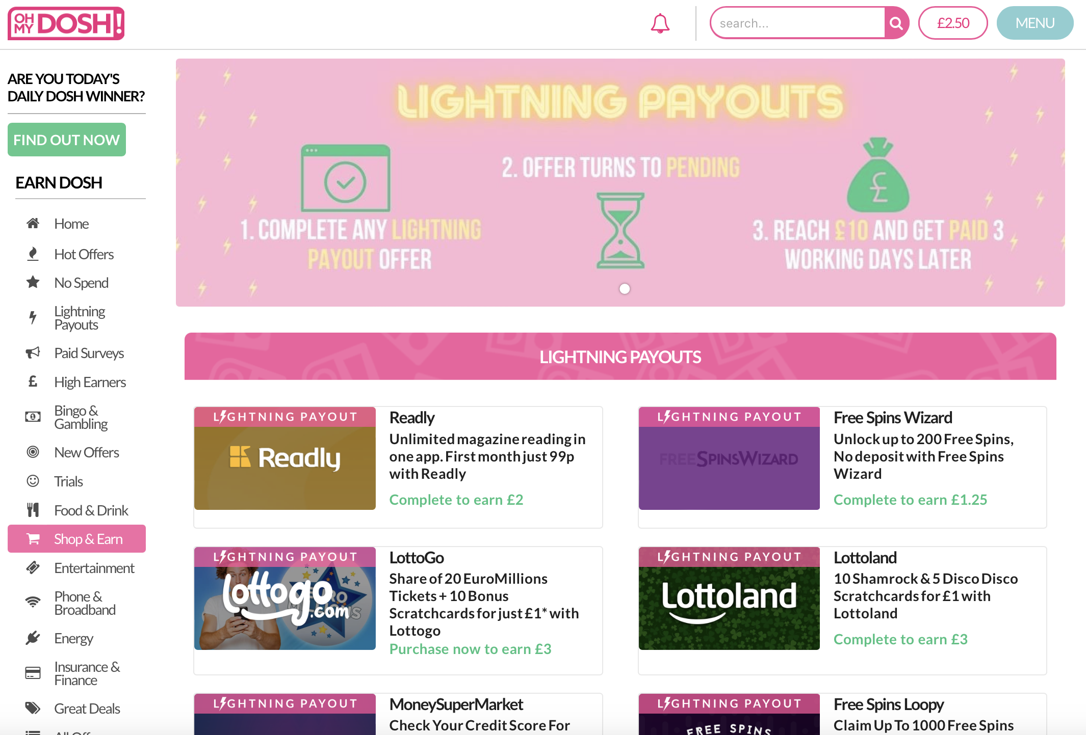 Additionally, there’s a daily prize of £10 called the “Daily Dosh” that one random member can win, but it does require a claim, so it could be missed easily. OhMyDosh has a very generous referral scheme that allows you to earn £5 when your friends or family sign up through your link and cash out £10.