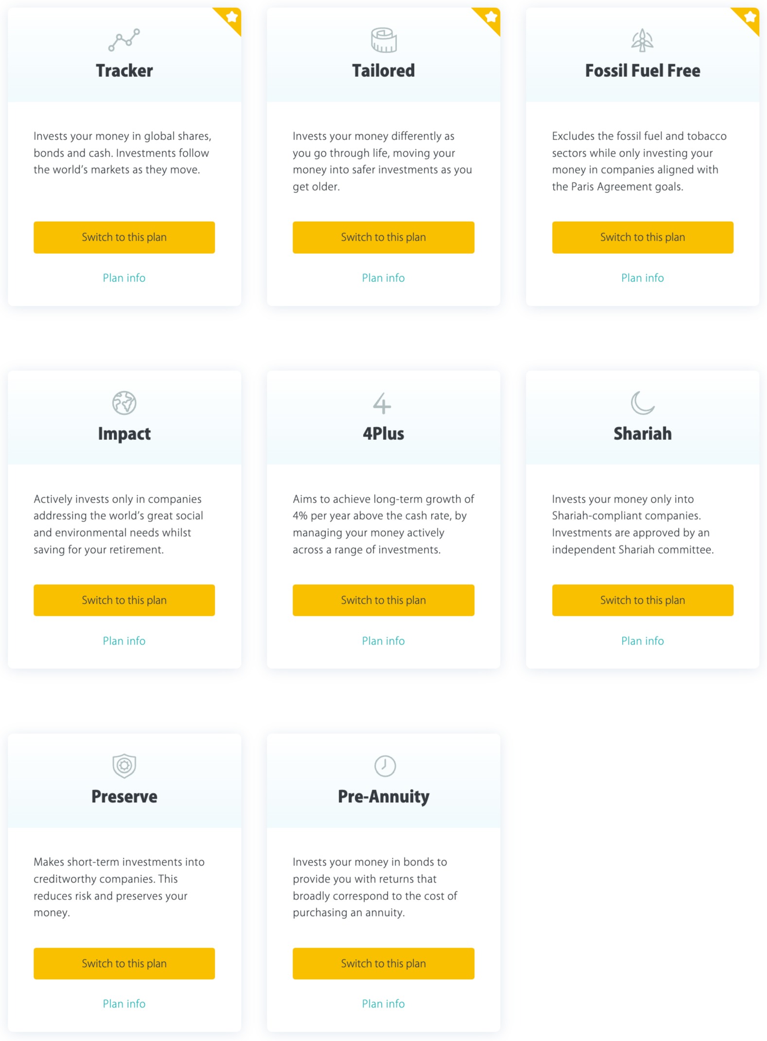 PensionBee offers a range of investment options to suit different risk profiles and investment goals. The platform has eight investment plans, ranging from cautious to adventurous, so you can choose the one that best suits your needs. You can also change your investment plan at any time if your circumstances change.